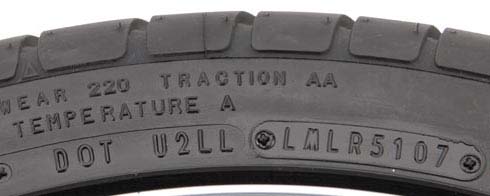 You can ignore all the stuff in the middle of the DOT code, the last 4 numbers are the date, 2 for the week of the year (0 to 52) and the last 2 are the year. This tire was made the 51st week, Christmas week, in 2007. If I was looking at an RV with this tire, I’d be looking at replacing them.